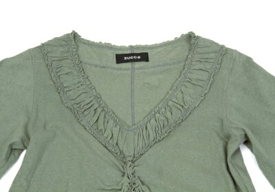 ズッカZUCCA コットン製品染め前ギャザーワンピース モスグリーンM商品コード:K-43370コンディションランクコンディション詳細サイドに擦れ毛羽立ちあり(写真参照)。