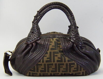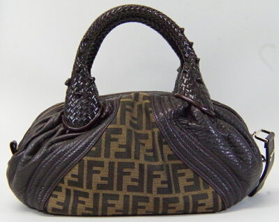 FENDI 【フェンディ】 ズッカ柄 ミニスパイバッグ ハンドバッグ キャンバス×レザー カーキ×ブラウン