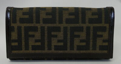 FENDI 【フェンディ】 二つ折り 長財布 ズッカ柄 キャンバス×レザー ダークブラウン 未使用品 USED-S 【中古】1200294897900044【激安】【コンビニ受取対応商品】